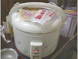 炊き始める。少し脱線するがご飯のおかずの冷凍ものを溶かすために炊飯器に置いておく。